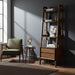 - Features four spacious shelves for display and two drawers to keep clutter out of sight.
