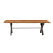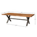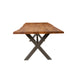 - Solid 2.25" Acacia Table top with Solid Metal X legs in gunmetal finish