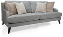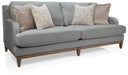 This sofa combines graceful curves with tailored detailing to create a timeless design. A gently sloped arm and deep seat cushions offer inviting comfort, while versatile styling allows you to choose between a refined show wood base or sleek flared legs.