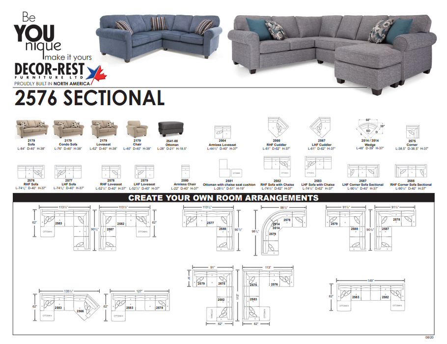• LHF Loveseat: 53" L x 40" D x 37" H