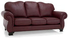 This sofa is large and in charge with its classic traditional styling.  Semi attached back with classic curve, large rounded arms with nail stud detailing and wood base with ornamental legs.